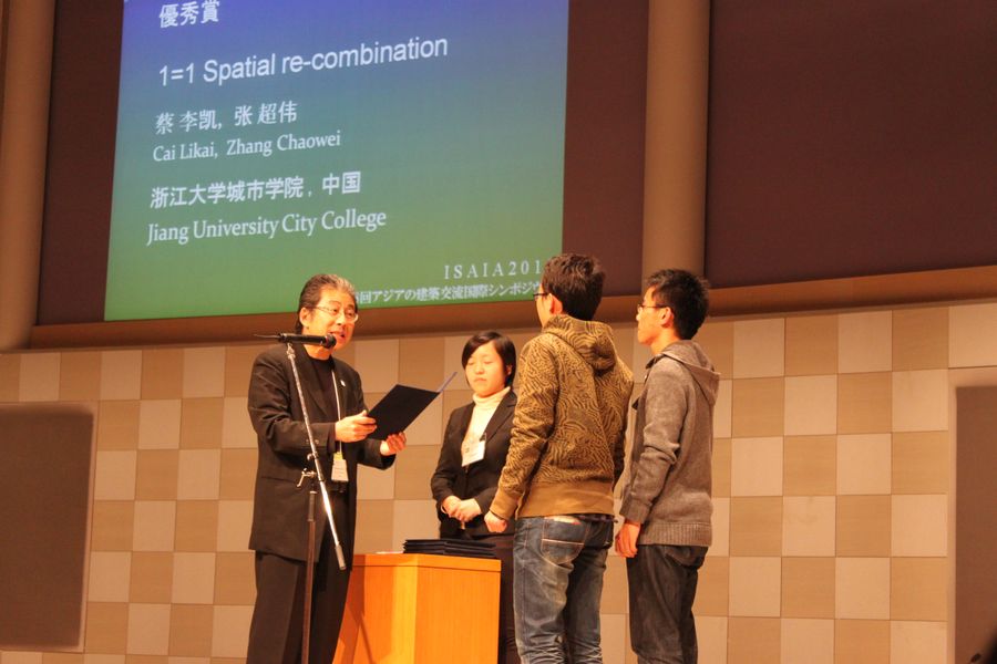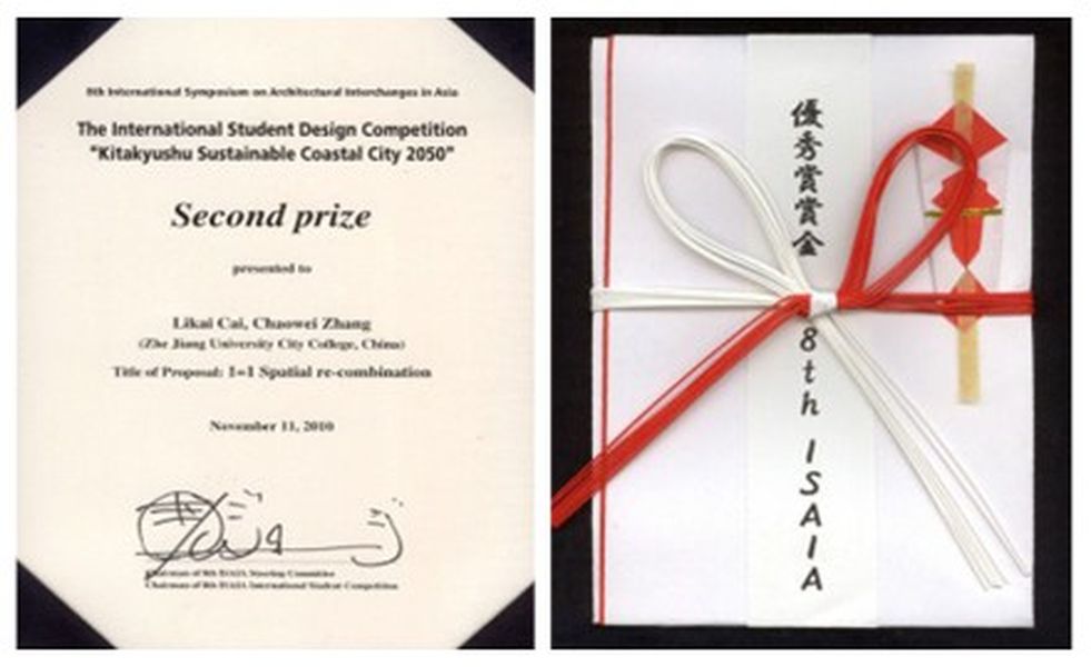 注:亚洲建筑国际交流会(International Symposium on Architectural Interchanges in Asia,简称ISAIA)是由日本建筑学会、韩国建筑学会和中国建筑学会共同发起组办的国际学术交流会议,会议每两年举办一次并由三个学会轮流承办。其中,第七届亚洲建筑国际交流会由中国建筑学会承办,于2008年10月在北京召开。而本届亚洲建筑国际交流会是第八届亚洲建筑国际交流会(8th ISAIA)由日本建筑学会承办,在日本北九州市举行。会议的主题为“亚洲视角:未来的秩序和智慧”,来自中国、韩国、日本和其他国家的300余名代表出席了本次大会。作为本次大会的一项特别活动——国际建筑院校学生设计竞赛,题目是Kitakyushu Sustainable Coastal City 2050(北九州市2050年海岸城市设计),吸引了众多国际学生参加,共评出一等奖1个,二等奖2个,三等奖3个。作为参赛年级最低、年龄最小的365滚球网站大三学生蔡李凯、张超伟获得二等奖。