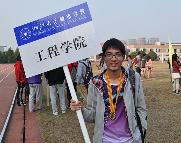 在郑立炜看来,坚持是一种态度,“在你想要放弃的那一刻,想想为什么当初坚持走到了这里。成功的关键就在于你敢不敢拼。”他也曾彷徨过,困惑过,受伤过,但他依旧坚持着,迎难而上。三年的坚持,收获的不只是奖牌,不只是眼前的荣耀,还有难能可贵的友情。“在赛场上,友情是坚不可摧的,最能体现默契的便是接力了。”11月中旬,金牌四人组成员代表城院出征浙江省第三届大学生田径锦标赛,4×100、4×400两个项目再次刷新校记录,并以第四名的好成绩获得我院学生参加省级田径比赛史上最优成绩。谈及此事,郑立炜表现得比自己个人得奖还要自豪。“这是大家的荣誉,更是大家的互助,你无法想象当你接过同伴手中的接力棒或是将自己手中的接力棒递给你的同伴时是怎样的一种心情。在那瞬间,大家互相信赖,灵魂和身体不完全由你一个人主宰,大家合并成一支队伍,去搏击,去进取。”这就是工程金牌四人组的的默契。在赛场上敢拼敢冲的性格同样是在人生的其他舞台上所难以收获的,是一份在人性中至真至贵的武器。