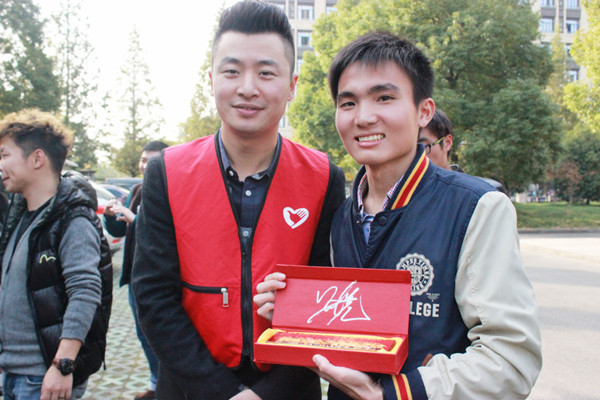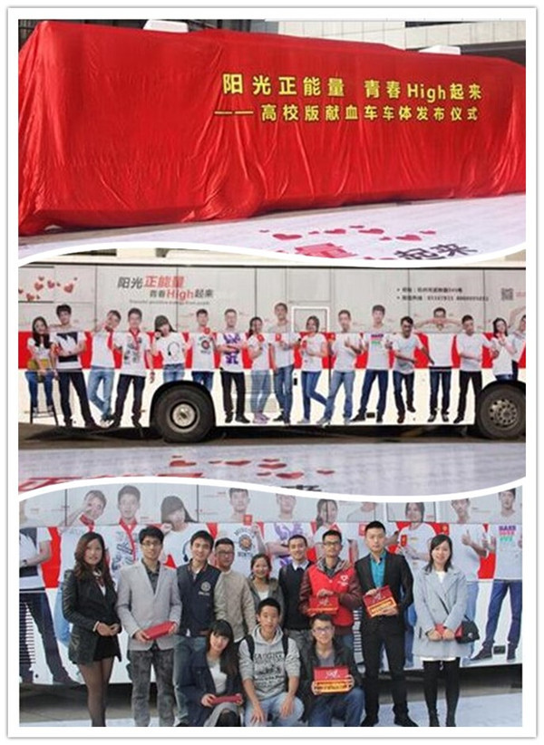 11月18日下午,由浙江省教育厅、浙江省卫生计生委、浙江省血液中心联合主办的“阳光正能量青春High起来——2014高校感恩月无偿献血活动启动仪式”在浙江工商大学举行。这是浙江省政府第7次在杭各大高校开展感恩无偿献血活动。仪式上,一辆装饰一新的神秘流动献血车揭开了“面纱”。这是为高校大学生特别设计的献血车新车体,以17所高校大学生献血者代表为背景,宣传大学生无偿献血,展示大学生热血助人的青春风采。365滚球网站机电1301班的王奇明赫然在列。