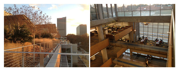 开学伊始,便被佐治亚理工完善的教学软硬件条件所吸引,这是一个让人爱上学习的地方:干净整洁的教学楼内一年四季几乎保持恒温,地毯上随处可见席地而坐、认真看资料的学生;图书馆的馆藏非常丰富,且配有大量的电脑、扫描仪、打印设备等,供学生查询或学习。此外,佐治亚理工还建有一座专门的自习楼(图2),里面配有大大小小各类讨论室、实验室和报告厅,楼层各处均摆放有各类沙发、桌椅,甚至还有午睡室。学生可通过网络随时预约教室,室内有会议桌、黑板、投影仪等设备,满足学生的各类学习和讨论需求。此外,本科生、研究生以及各专业之间的课程完全是打通的,除完成一部分必修课程外,其它课程学生可以自由选修,比如:土木的研究生可以选修计算机系的课程,若选修的学分足够多,还可直接申请计算机系的硕士学位。
