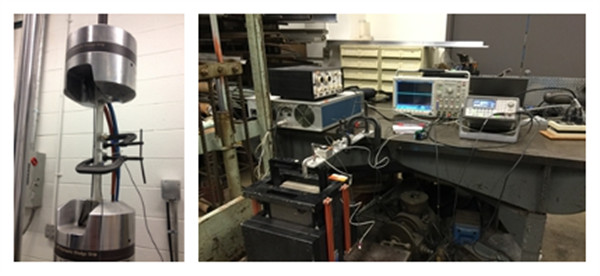 在美国的前半年时间,除了听课之外,到2014年底我开始参与所在实验室的一个课题项目,需要设计并进行铝梁呼吸裂缝的超声波无损检测试验。根据项目需要,我们确定了铝梁的模型尺寸,并采用佐治亚理工学院结构实验室的MTS设备张拉铝梁模型,使之产生初始裂缝;最后分别通过轴向拉压和弯曲等不同加载方式来验证超声波无损检测技术在呼吸裂缝动态测量方面的可行性(图7)。