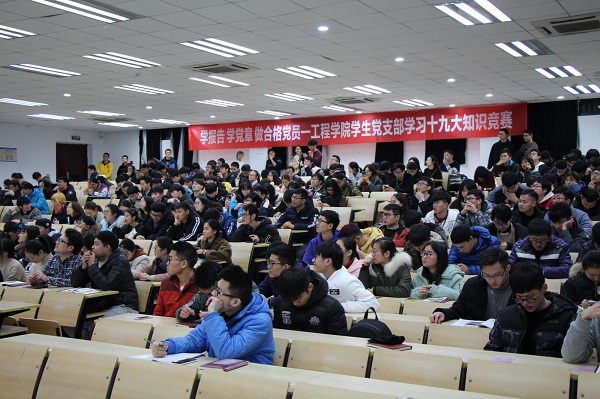 为增强党团员对党的认知,深入贯彻学习党的十九大精神,2017年12月15日晚18:30,工程学院学生党支部学习十九大精神知识竞赛在理二118如期举办。工程学院党委书记谷波权老师、组织员李大香老师、学工办苏珊珊、张桂莲、余传涨、张伟老师等均出席了此次活动。